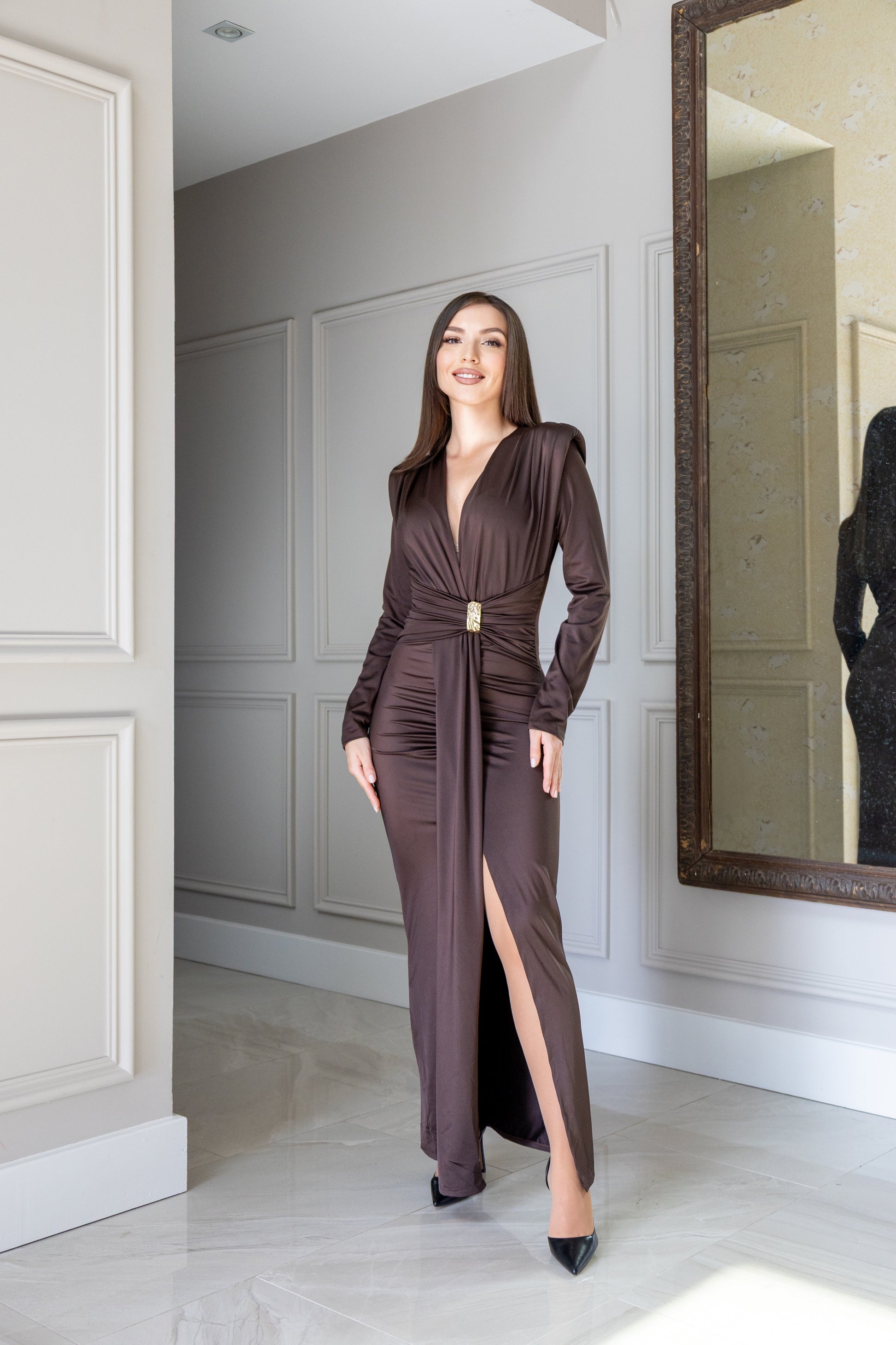 Make a statement at any evening in this Chocolate Brown Ellie dress