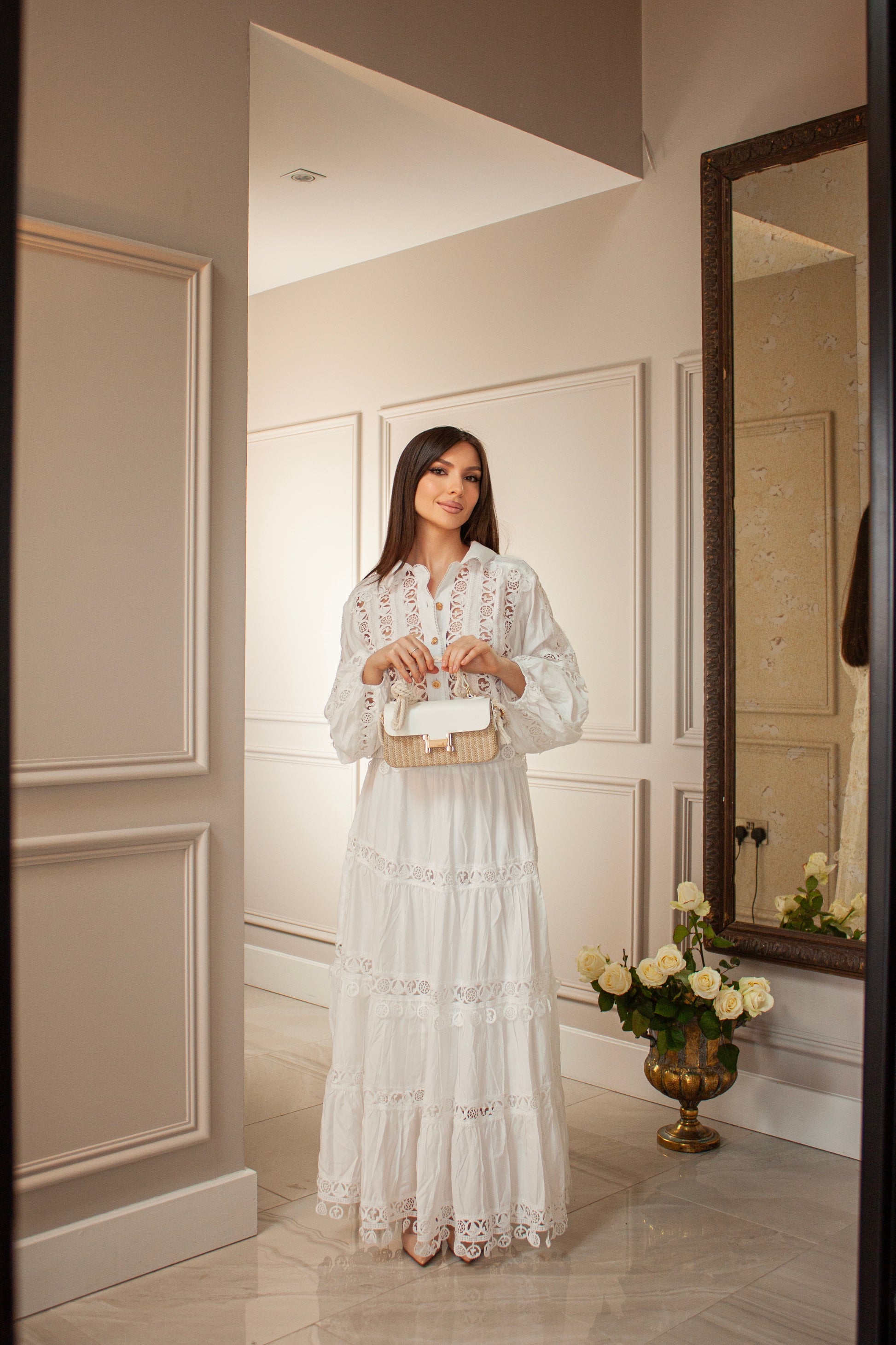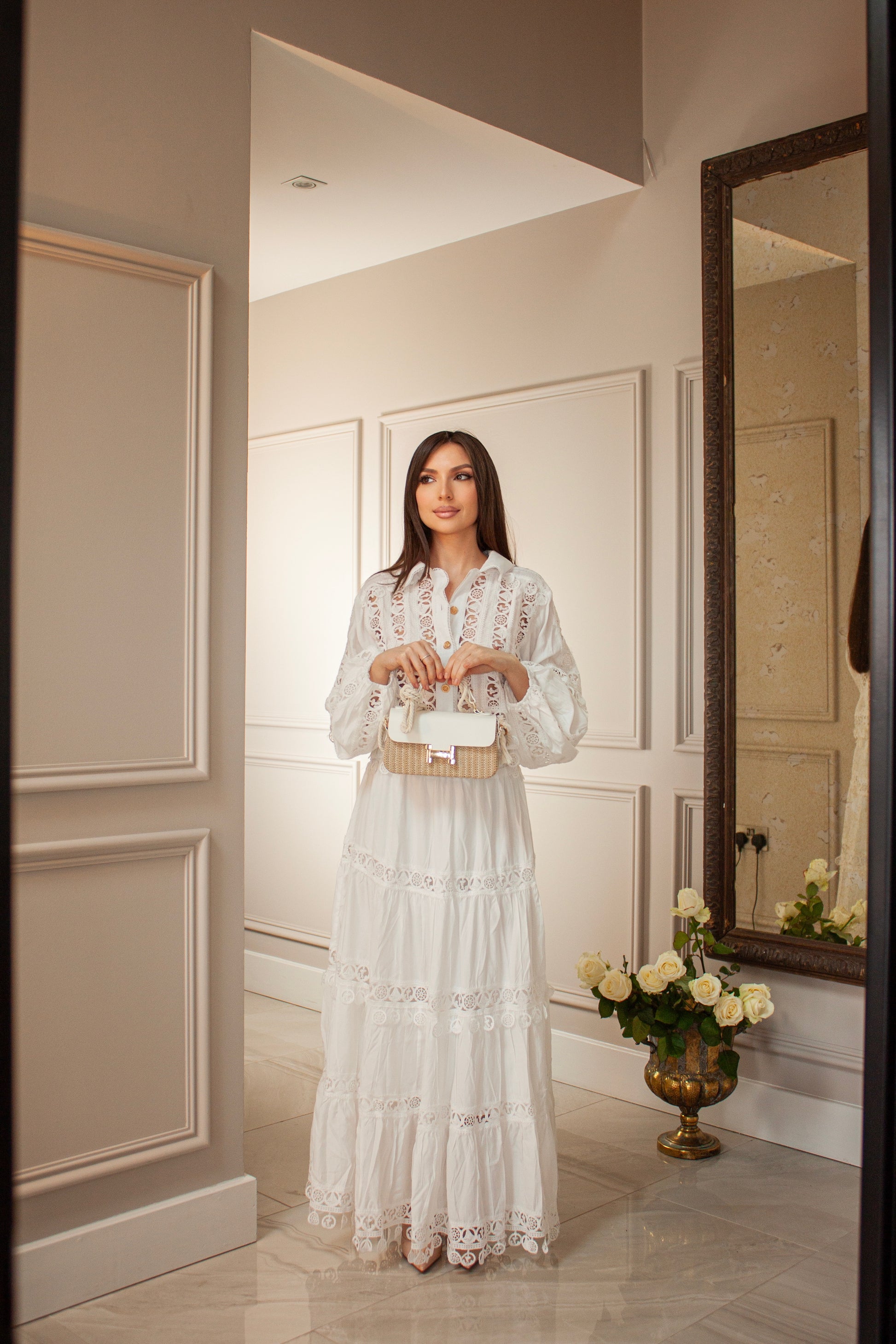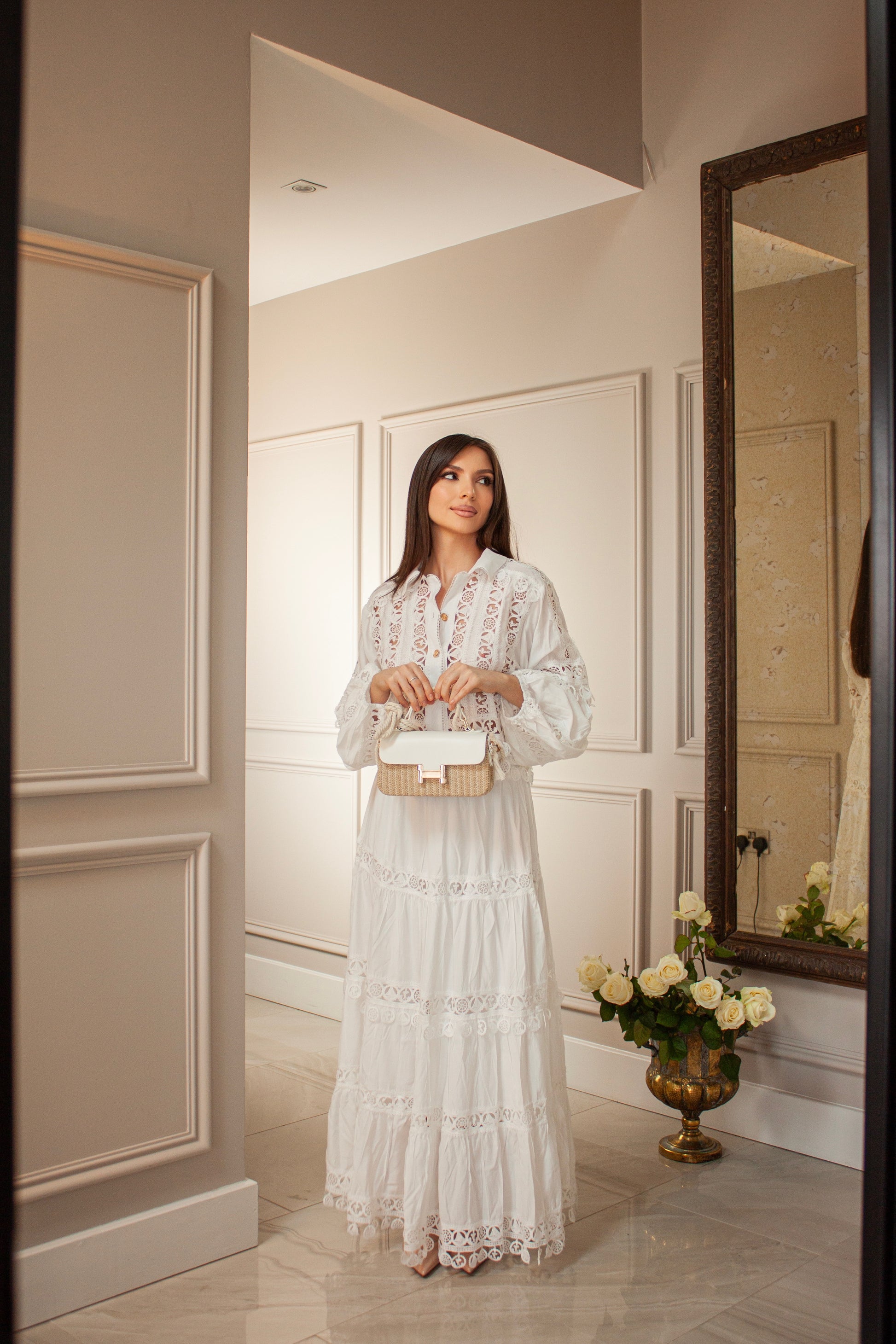 Beautiful 2 piece with gold button detail light weight Speaks elegance and sophistication Well sized and comfortable
