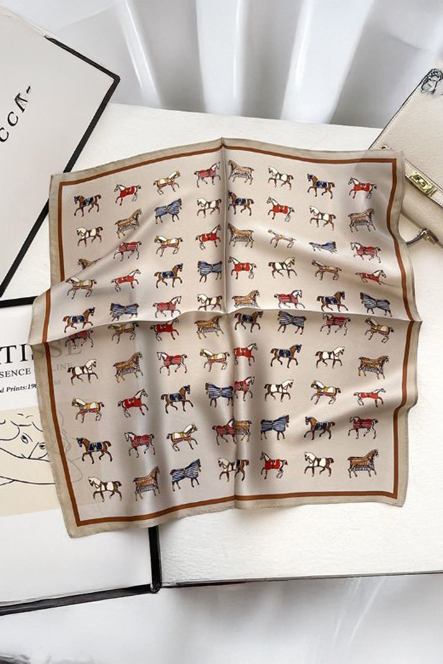 Capture timeless elegance with this stunning women's faux silk scarf, featuring a captivating equestrian horse print.